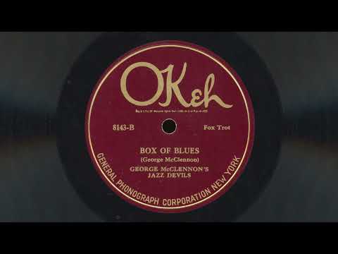 “Box of Blues”, the first track of the first recording session of George McClennon’s Jazz Devils, is performed by a bit of a super group that included Bob Fuller (later to record many small combo tunes as a clarinetist in his own right), Clarence Williams (who should need no introduction), and Tom Morris & Charlie Irvis (who had recorded several records together in 1923 as Thomas Morris Past Jazz Masters) and Buddy Christian (who seems to have played with everyone – Sidney Bechet, Buster Bailey, Bubber Miley, Louis Armstrong, Bessie Smith… the list goes on!).
