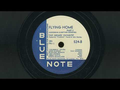 This session from 1946 finds Tiny recording for the Blue Note label. This blazingly fast rendition of “Flying Home”, a relaxed Benny Goodman/Lionel Hampton small combo composition from 1939, shows both the growing influence of bop and R&B on Tiny’s playing. The extended solos meant the track had to be divided into two parts to fit on a 10″ 78 rpm record – which could only hold a little over three minutes of music per side.